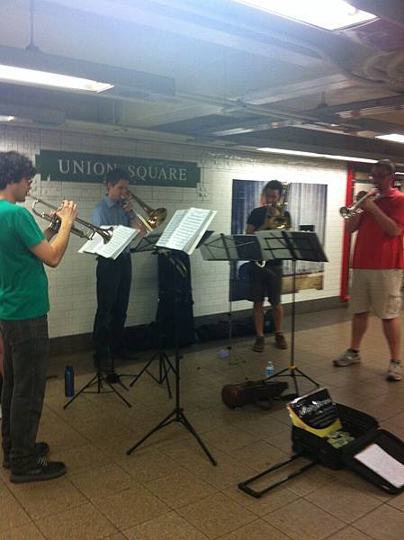 Union Square 的 Subway裡總是有不同的人在表演 今天是銅管五重奏唷