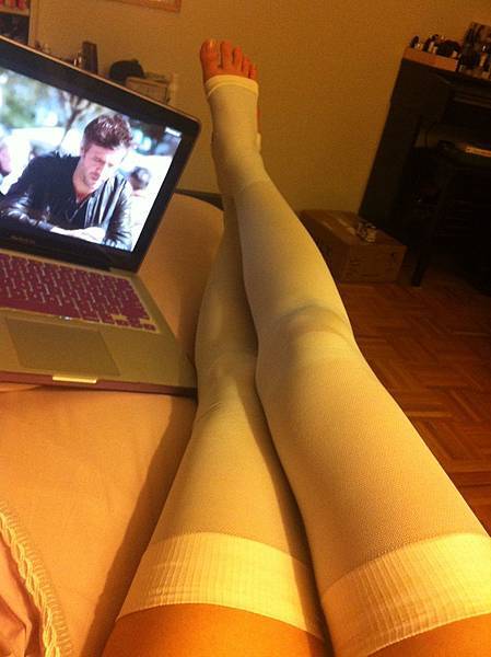 大家我要準備睡覺囉! 穿著我的睡覺美腿襪(永遠都不會知道他是不是真的有用!?)看著暑假沒空追的美劇Smash