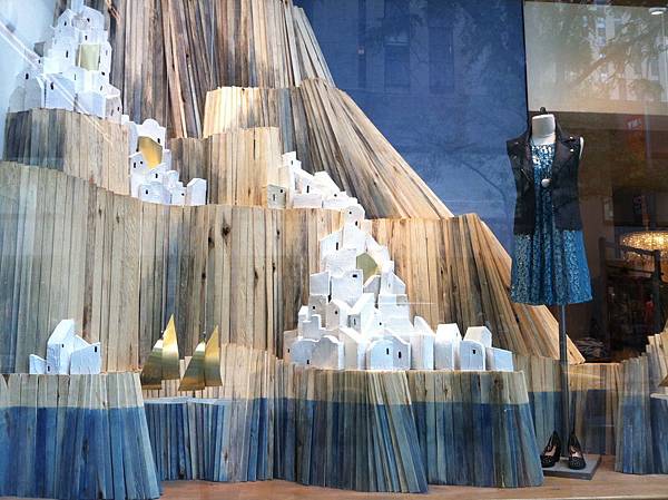 這季的櫥窗設計是走希臘風格 所有的東西都是木製的